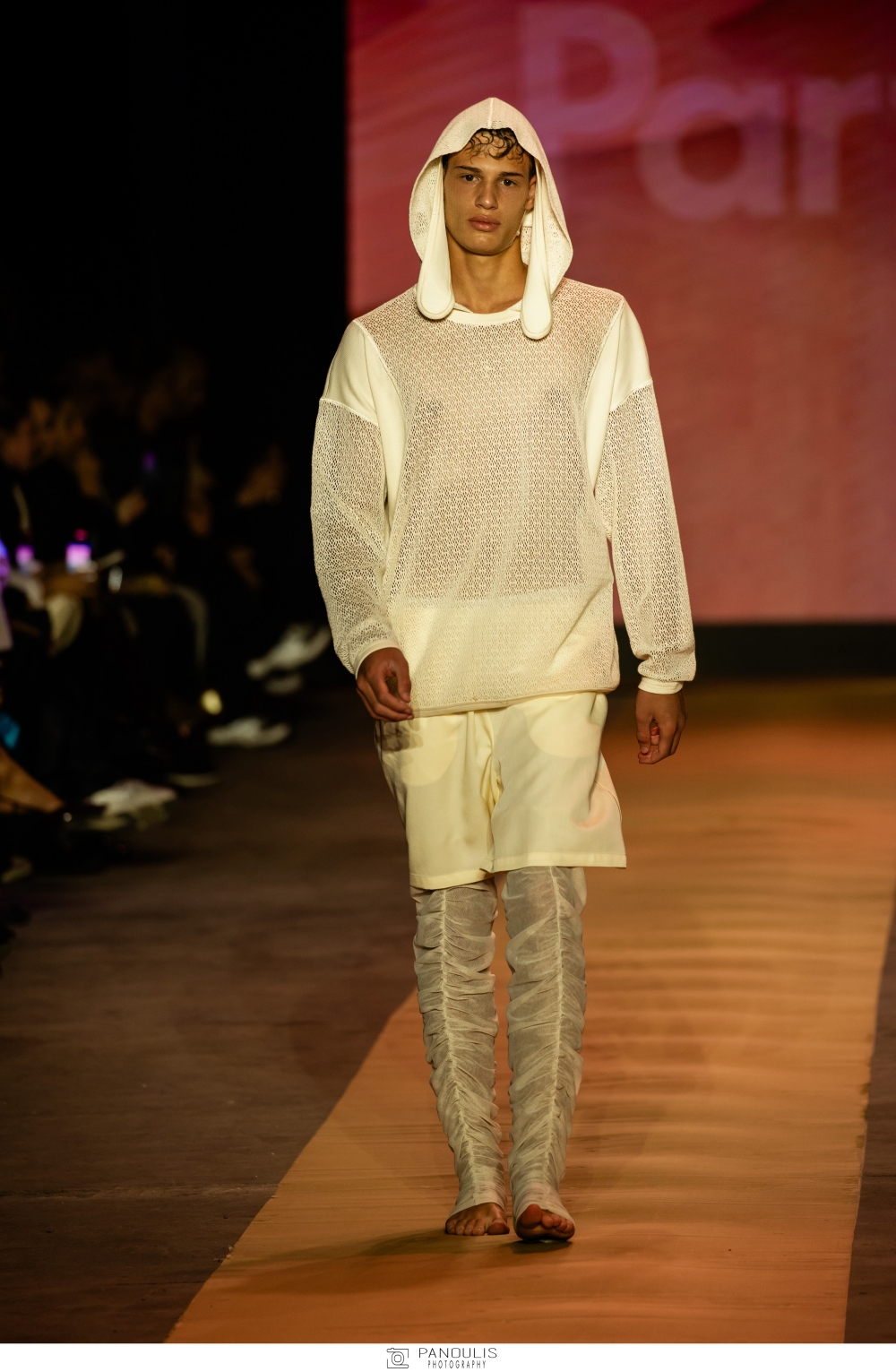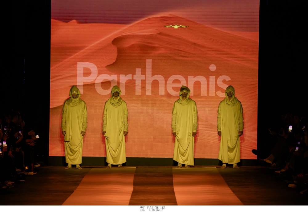 Στην συνέχεια, στην Πέτρινη Αποθήκη του ΟΛΠ ο οίκος Parthenis παρουσίασε τη SS25 συλλογή με τίτλο METAMORPHOSES, η οποία επαναδιατυπώνει τα καθημερινά βασικά κομμάτια, εισάγοντας νέα εμβληματικά σχέδια που αποπνέουν αίσθηση ανανέωσης και ατομικότητας. Η χρωματική παλέτα της συλλογής εκφράζεται μέσα από εναρμονισμένους τόνους που αποπνέουν ηρεμία και ανασυγκρότηση μεταβαίνοντας αρμονικά από το σκοτάδι στο φως. Οι χαλαρές σιλουέτες και τα statement κομμάτια αντηχούν την έννοια της μεταμόρφωσης, αντικατοπτρίζοντας τις εξελισσόμενες ταυτότητες του εκάστοτε ανθρώπου που το φοράει. Όλα οδηγούν σε ένα μεταμορφωτικό ταξίδι μέσα από τη μόδα, όπου τα όρια ανάμεσα στην τεχνολογία και την ανθρωπότητα συγχέονται σε μια συνεχώς εξελισσόμενη αφήγηση.