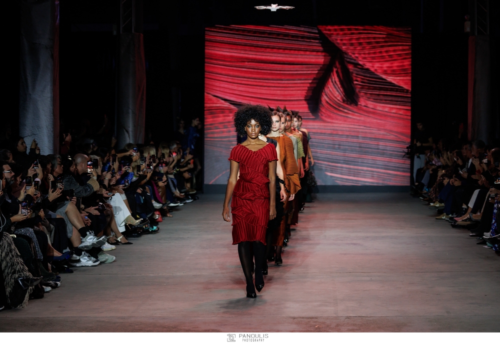Στην συνέχεια, ακολούθησαν οι δημιουργίες της Chrysanthi Farmaki Creations με τη Spring/Summer ’25 συλλογή “Exotic Elegance”. Η συλλογή αποτελεί μια απαλή και πολύχρωμη γιορτή της φύσης, εμπνευσμένη από την ομορφιά και την ποικιλία των εξωτικών πουλιών..O Stratos Eleftheriou/ISSI παρουσίασε τη Spring/Summer ’25 συλλογή “Cyber Couture”. Το brand ISSI από την ελληνική λέξη «ΙΣΣΟΙ» («Ισότητα») προσδιορίζεται ως ένα brand γνωστό για τα τολμηρά και πειραματικά του σχέδια, δημιουργώντας avant-garde, διαχρονικά ανδρικά ρούχα και όχι μόνο. Η σχεδιαστική του φιλοσοφία έχει τις ρίζες του στον πειραματισμό και την τολμηρή καλλιτεχνική έκφραση, συχνά εμπνευσμένη από γεωμετρικά σχήματα και αντισυμβατικές φόρμες. Η Daphne Valente παρουσίασε τη συλλογή “Living Sculpture”. Η Δάφνη Βαλέντε αποκαλείται «η γλύπτρια της μόδας», γιατί πλάθει τα πλισέ υφάσματα της επάνω στο σώμα, δημιουργώντας μια μοναδική, σύγχρονη Ελληνική αισθητική.